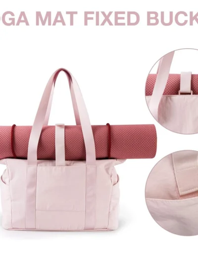 Carry all your sports essentials with the Multifunctional Fitness Tote Bag, featuring a yoga mat strap for easy transportation.