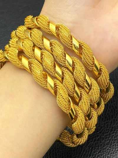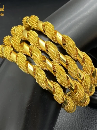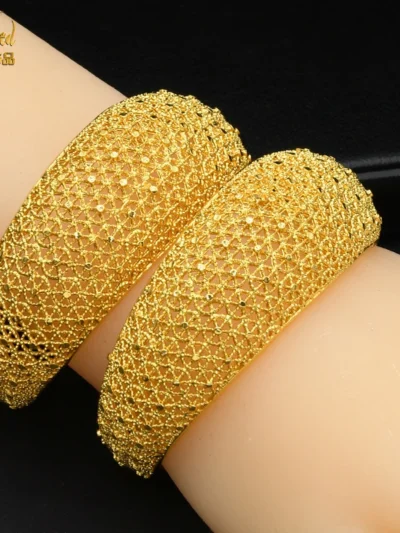 Elevate your style with these exquisite Dubai 24K Gold Color Bangles, perfect for weddings, bridals, and special occasions.