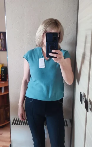 Stay cool and comfortable this summer with our loose-fit cotton t-shirt. Made from 100% pure cotton, this casual top features a solid knit design, short sleeves, and a V-neck collar.