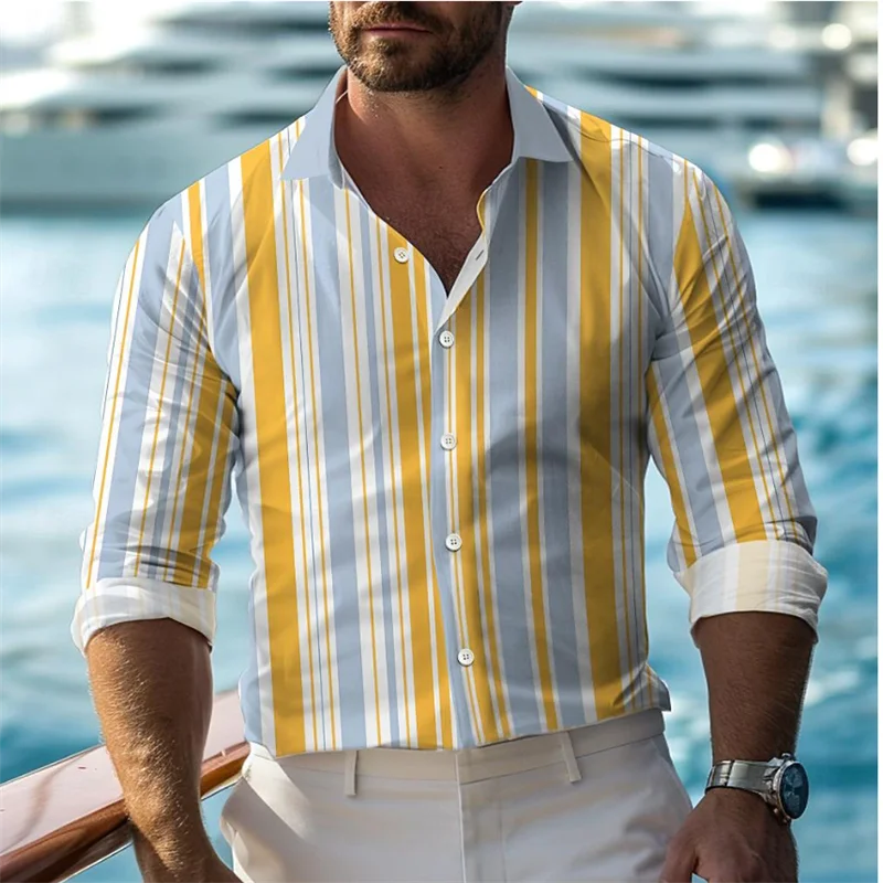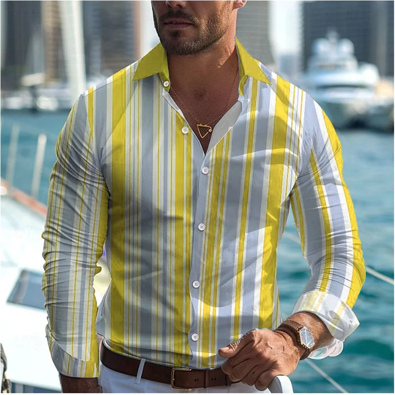 Fashionable Casual Men’s Line Printed Shirt