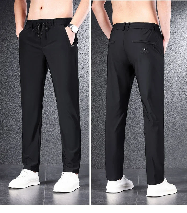 Elevate your casual style with our Soft Ice Silk Fabric Men’s Thin Casual Pants. Featuring a comfortable straight fit, these pants are perfect for everyday wear.