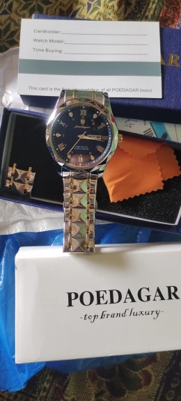The POEDAGAR Luxury Man Wristwatch is a stylish and functional timepiece that exudes sophistication and elegance. The round stainless steel case measures 41mm in diameter and features a 20mm band, ensuring a comfortable fit for any wrist.