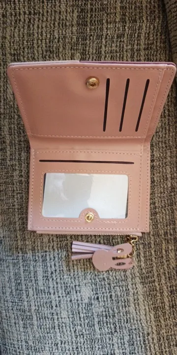 This women’s PU leather wallet is a perfect blend of style and functionality. Made from high-quality PU leather, it features a foldable design, card holder, note compartment, and photo holder.