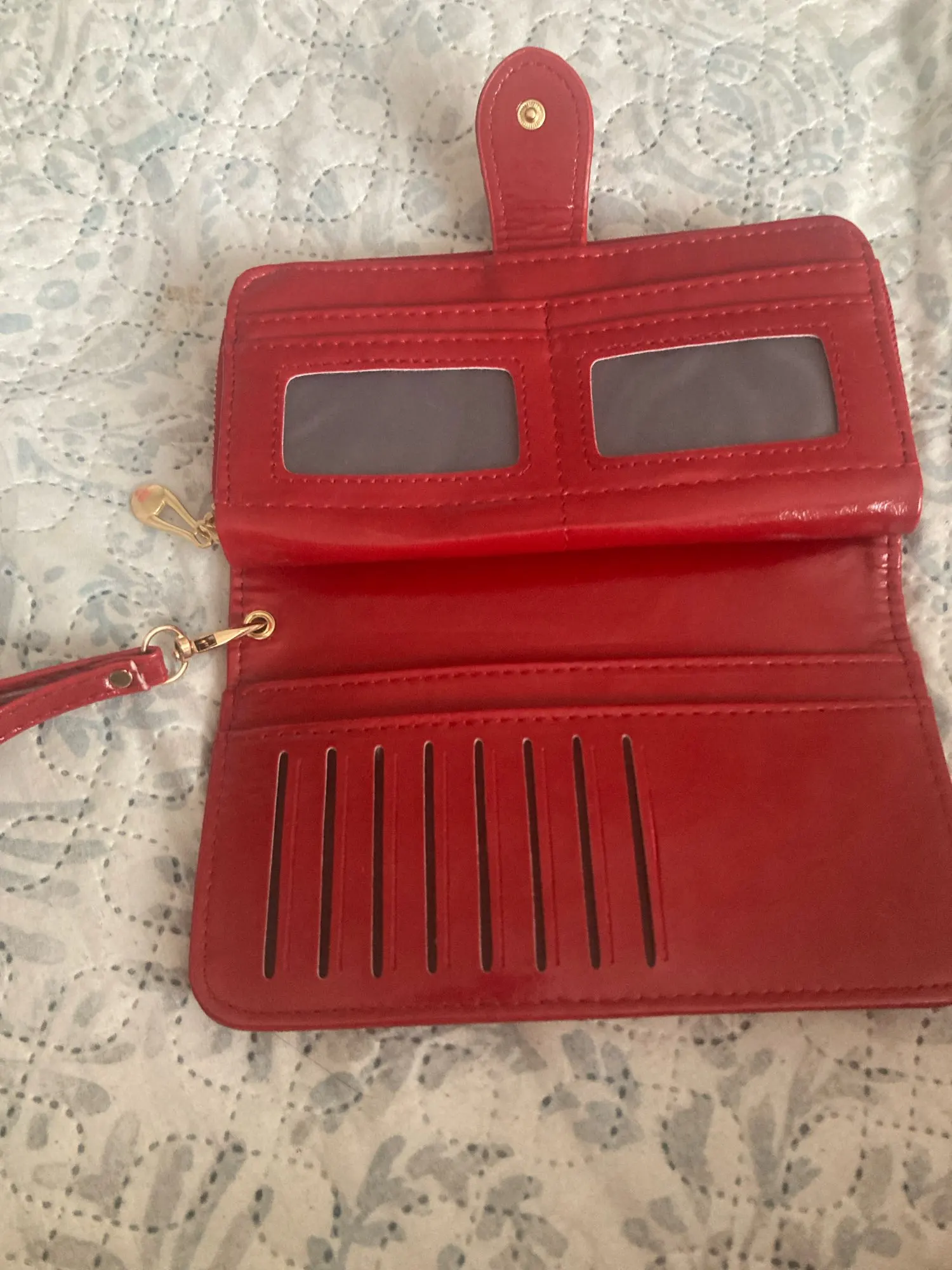 The interior includes a photo holder, interior zipper pocket, cell phone pocket, zipper pouch, coin pocket, interior compartment, interior slot pocket, note compartment, and card holder, ensuring you can carry all your daily essentials with you.