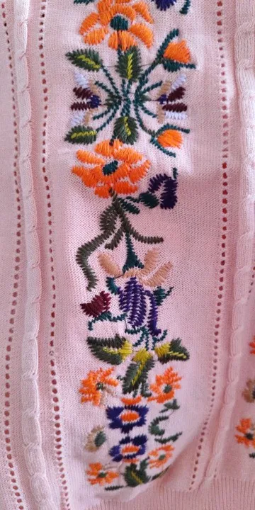 Adorned with intricate floral embroidery, this sweater celebrates the art of hand-done embroidery. The subtle sheen of the acrylic material emphasizes the delicate patterns, offering a sophisticated look that sets it apart from ordinary garments.