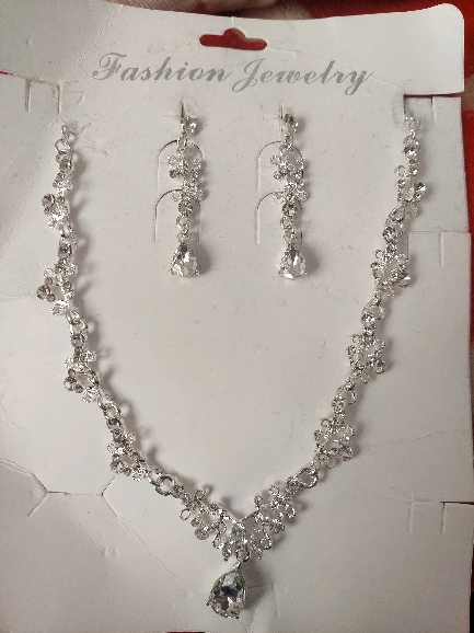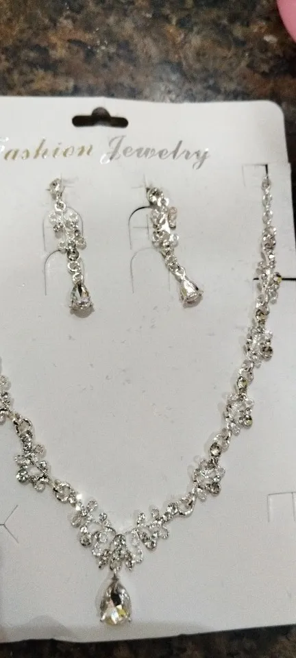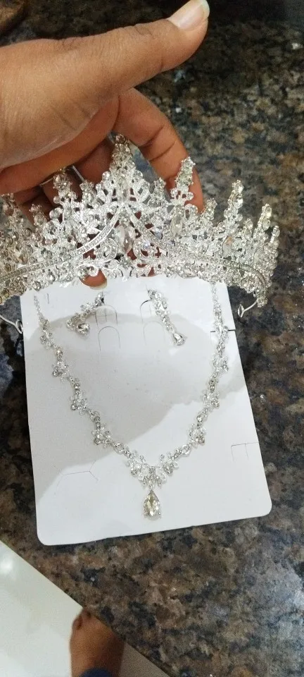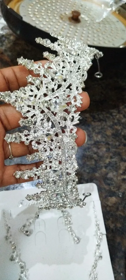 Elevate your wedding look with our Luxury Silver-Color Crystal Water Drop Rhinestone Tiara Necklace Earrings Wedding 4 Pcs Jewelry Set. This exquisite set features a trendy design, perfect for making a statement on your special day.