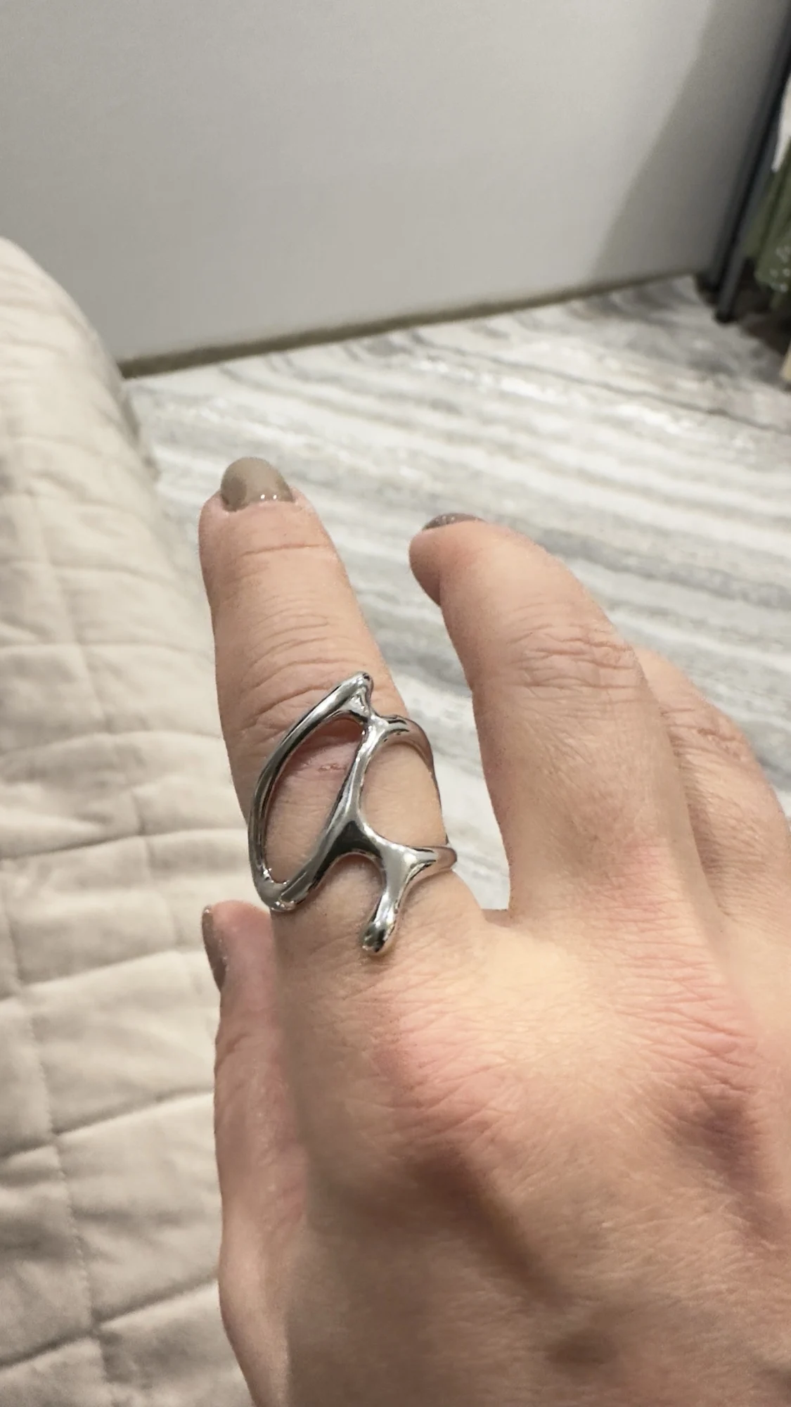 The ring features a drip glaze effect, giving it a unique and eye-catching appearance. The geometric shape adds a touch of sophistication, making it a great accessory for formal or casual events.