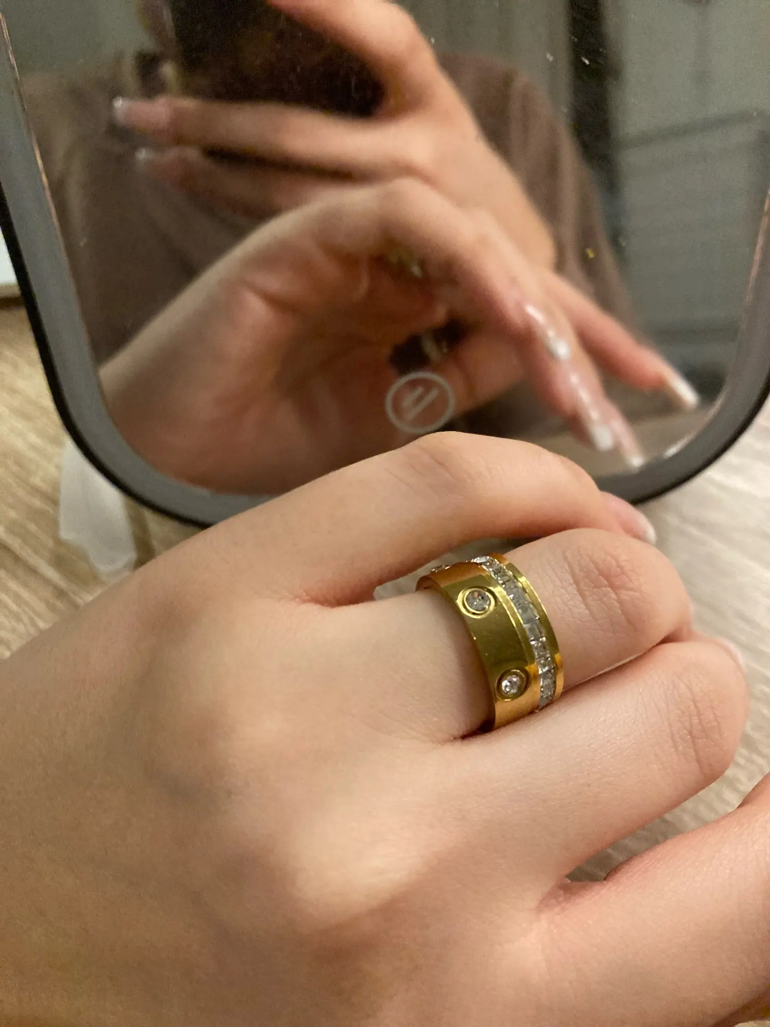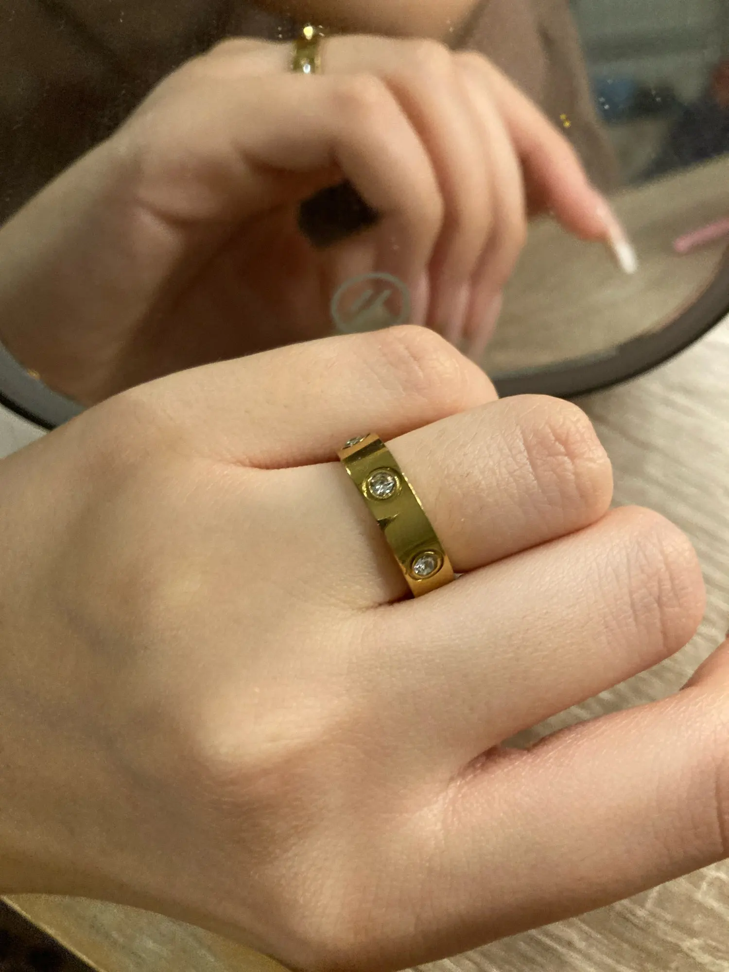 NOTICE: This is not real gold, but a gold-replicating alloy of other metals like stainless steel