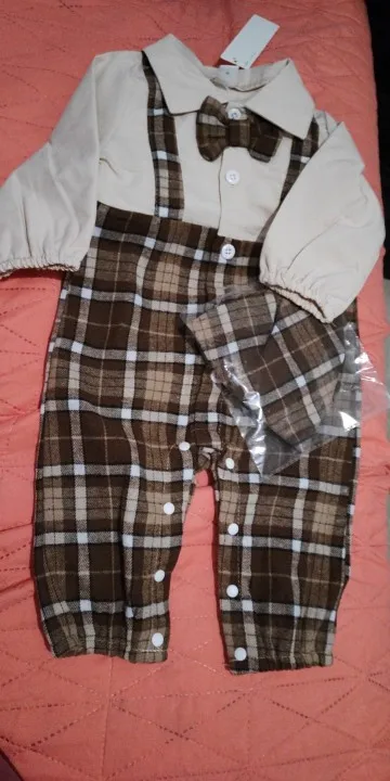 The two-piece design allows for flexibility and convenience, making it easy to dress your baby boy for a variety of occasions. The jumpsuit and suspenders can be mixed and matched with other items in your wardrobe, adding a touch of sophistication to your little gentleman’s look. Whether it’s a family photo shoot or a casual outing, this outfit is sure to impress.