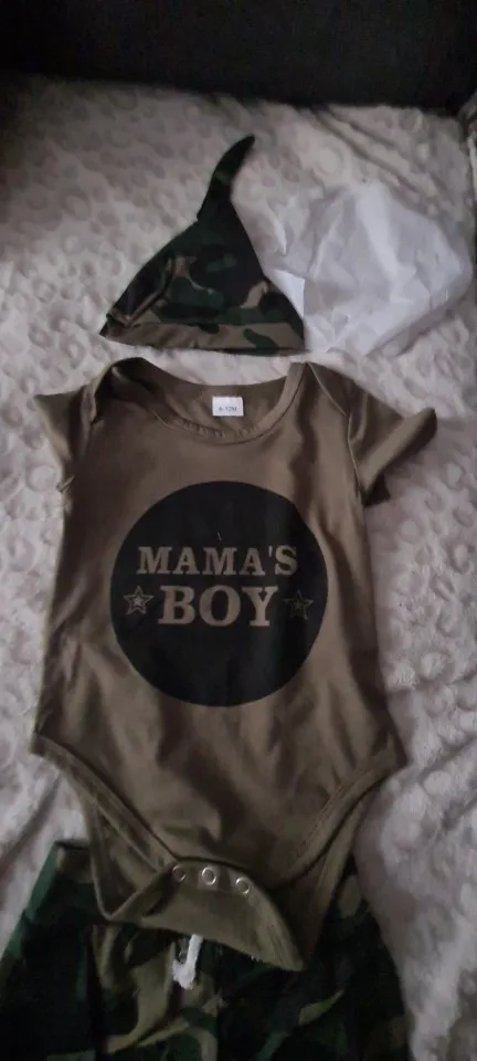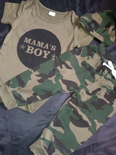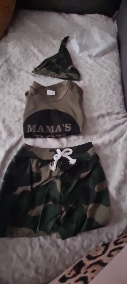 Dress your little one in style with our 3-piece baby boy summer clothes set. The set includes a short sleeve romper, camouflage pants, and a matching hat, perfect for your newborn baby boy from 0-18 months.