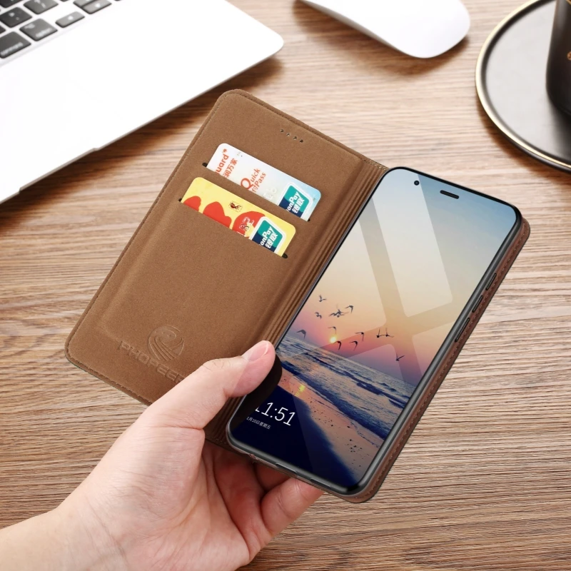 Keep your Xiaomi Redmi protected with our high-quality cowhide leather flip case wallet. Featuring a magnetic closing mechanism, kickstand, and multiple card slots, this case is perfect for daily use.