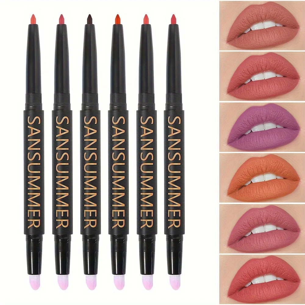 6-Color Velvet Waterproof Lipliner with Lip Brush